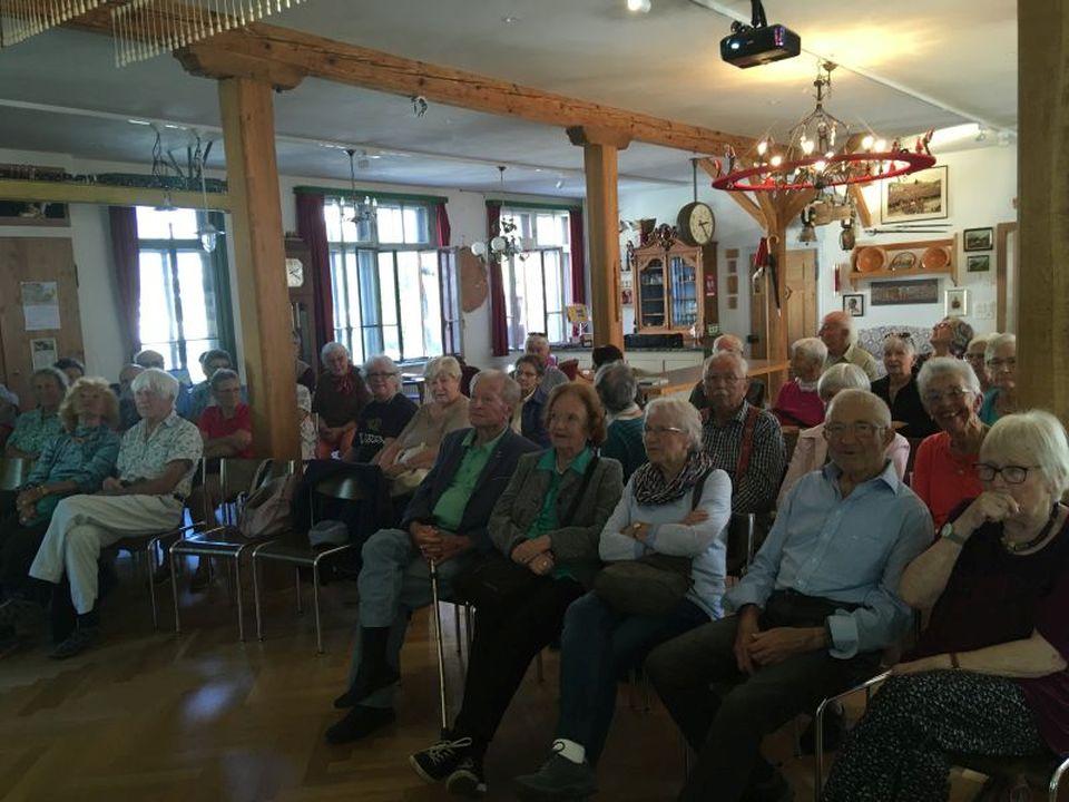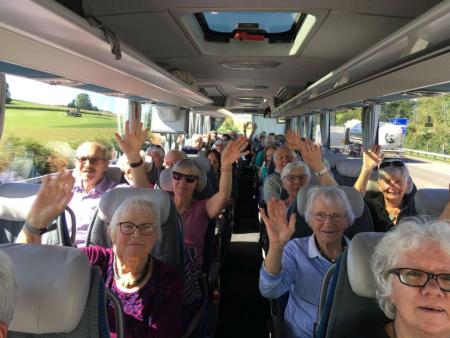 44 gut gelaunte Teilnehmende starteten um 13 Uhr beim Feuerwehrmagazin im Bus von Rattin auf direktem Weg Richtung Herisau. Dort erwarteten uns Herr Werner Alder und Frau Maya Stieger, seine sympathische musikalische Partnerin, beide in der Appenzeller Ausserrhoder Werktags - Tracht.
