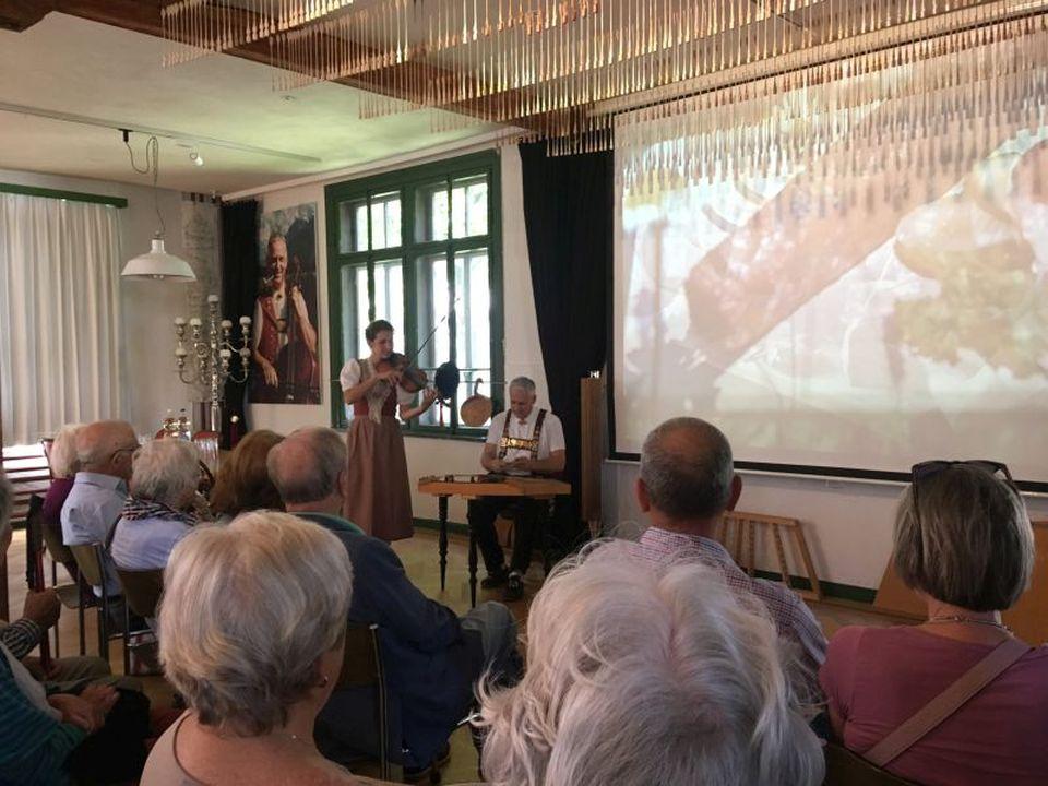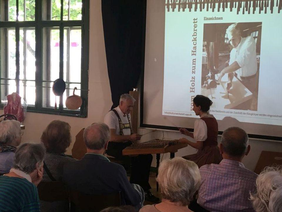 Der Hackbrettbauer Alder wusste auf amüsante und spannende Art sehr viel Interessantes über die Herkunft, den Bau und die Verwendung des Hackbretts zu berichten, bestens veranschaulicht durch die Bilder. Auch Frau Styger erzählte uns Wissenswertes über die Appenzeller Kultur. Aufgelockert waren die Worte immer wieder durch abwechslungsreiche Musik auf dem Hackbrett und der Geige.