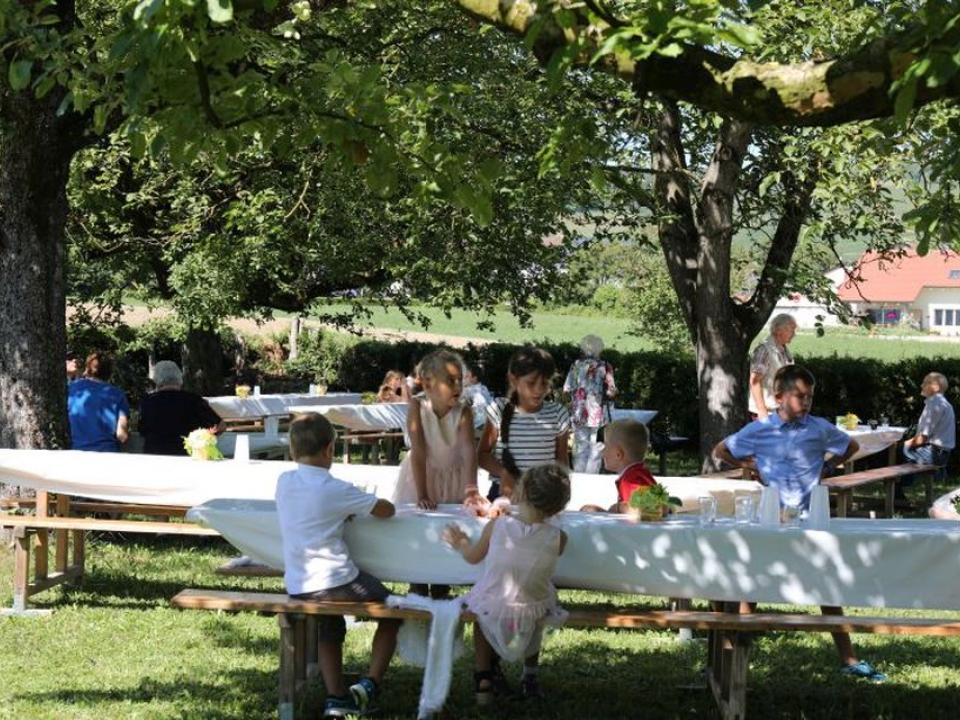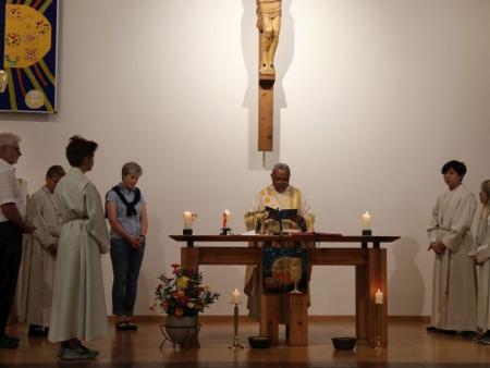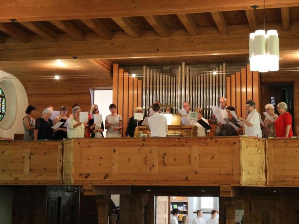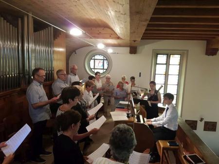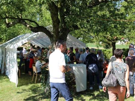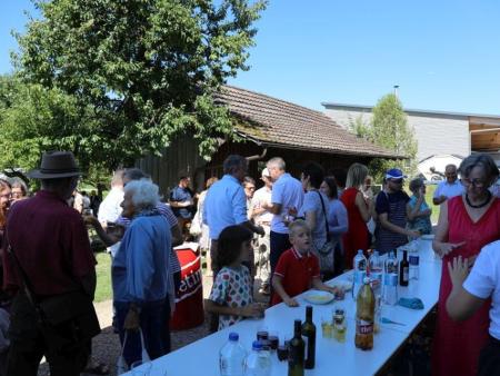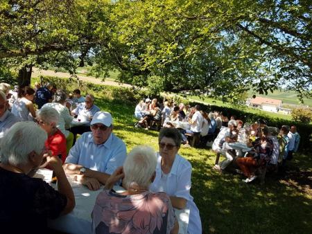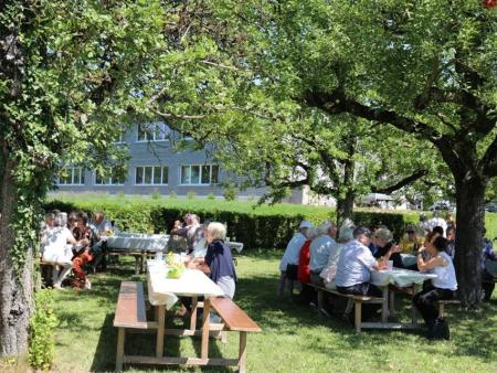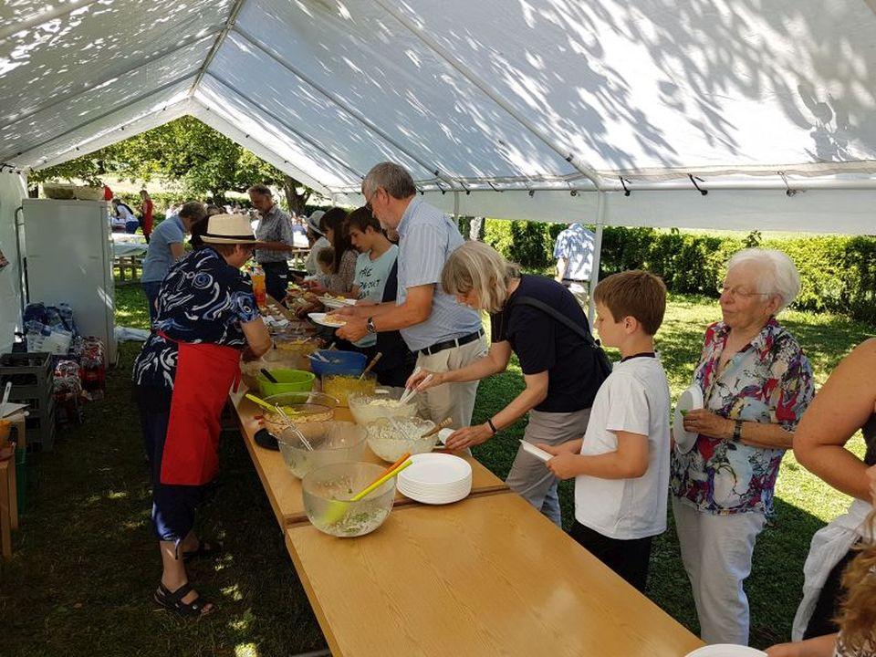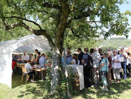 Der Kirchenchor Neuhausen trug zum festlichen Gottesdienst am 18. August bei. Unterstützt wurde er von einer Fagottistin. Pfarrer Adolf Büttiker liess es sich nicht nehmen, in seiner feurigen Predigt auch das Engagement der vielen Ehrenamtlichen innerhalb der Pfarrei Hallau und des gesamten Pastoralraumes Neuhausen-Hallau zu würdigen. Wenn man für die Sache brennt, dann kommt es gut! Im Anschluss an den Gottesdienst gab es bei strahlendem Sonnenschein einen Apéro und anschliessend natürlich die begehrte feine Festwirtschaft. Das hat sich inzwischen im ganzen Pastoralraum herumgesprochen und so waren auch viele Gesichter aus der der Pfarrei Neuhausen zu sehen.