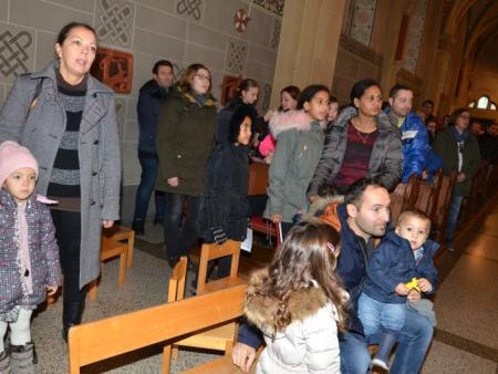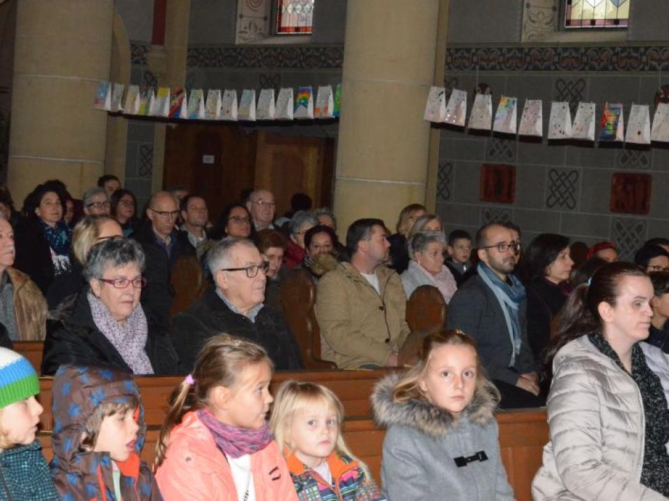 Für die Erwachsenen gab es in dieser Zeit eine spannende Predigt von Don Jan und unserem Vikar David Pfammatter, dazwischen zwei Interviews zur praktischen Gestaltung der Adventszeit – Vanessa Bosshard, die seit ihrer Kindheit blind ist, hat ihre Erfahrungen geschildert und Daria Serra, Theologin und Mutter von drei Kindern, berichtete, wie und warum sie in ihrer Familie ohne materielle Weihnachtsgeschenke auskommen. (Leider war dieser Teil akustisch nicht für alle verständlich – es wird analysiert, woran es gelegen hat, damit das nächste Mal wirklich alle KirchenbesucherInnen teilhaben können.)