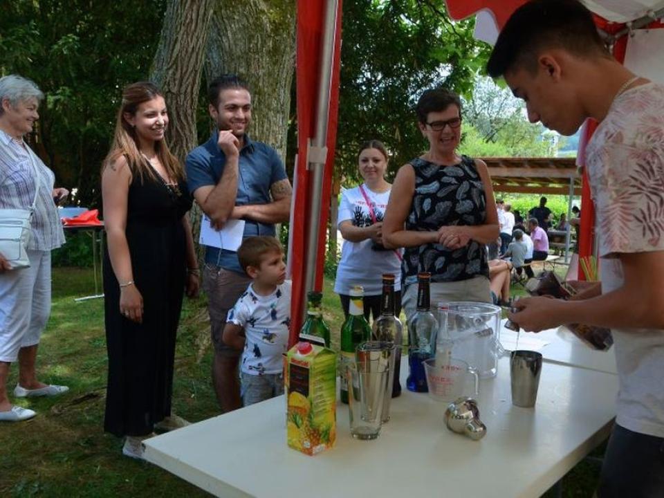 Dank vielen freiwilligen Helfern konnte eine vielfältige Festwirtschaft geboten werden, wo es etwas für jeden Geschmack dabei hatte, ob Hunger, Durst oder Gluscht! Auch die Crew war so organisiert, dass reibungslose Abläufe und nahtlose Abdeckung gewährleistet werden konnten. Das grosse Festzelt und der überdachte Tisch beim Spielplatz baten schattige Sitzmöglichkeiten, ebenfalls herrschte ein reger Austausch und geselliges Beisammensein.