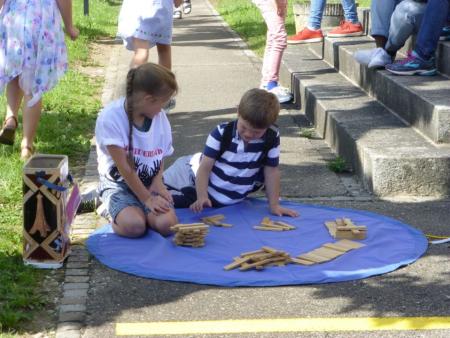 Währenddessen konnten sich die Kinder auf der Spielstrasse vergnügen und anhand eines Spielpasses reihum verschiedene Spielposten besuchen. Natürlich wurden auch Preise verlost und nicht zu vergessen ist die grosse Verlosung der 1.-3. Preise des Gewinnspiels. Auf der Spielstrasse war die Betreuung nicht nur durch Erwachsene gewährleistet: viele engagierte Ministranten/innen, Firmanden/innen und Lollipop-Sänger/innen schauten nach dem Rechten und waren gleichzeitig Schiedsrichter!