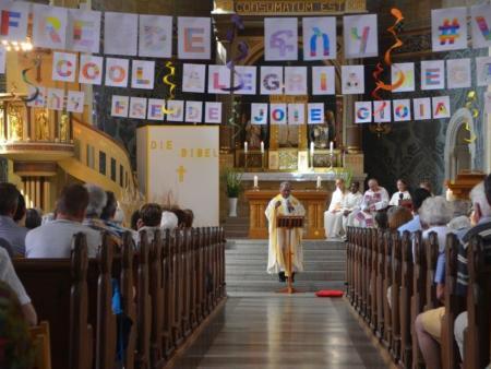 Das Pastoralraumfest stand ganz unter dem Motto Freude! Freude in allen Sprachen enthielten die Schriftzüge und Freude herrschte unter den Besuchern aus allen Ortschaften des gesamten Pastoralraums.