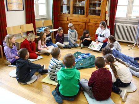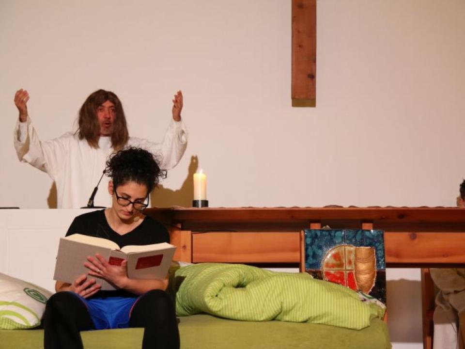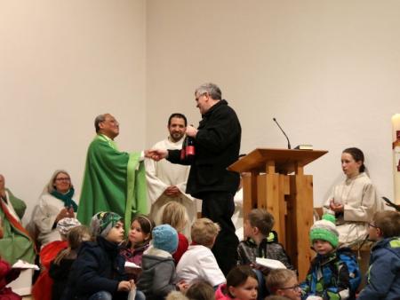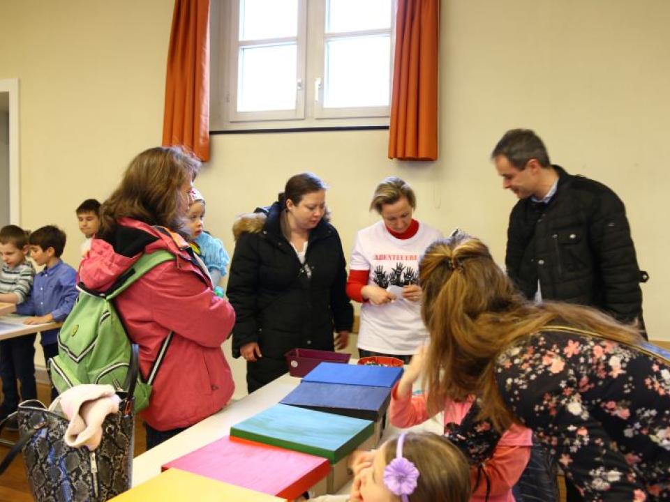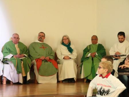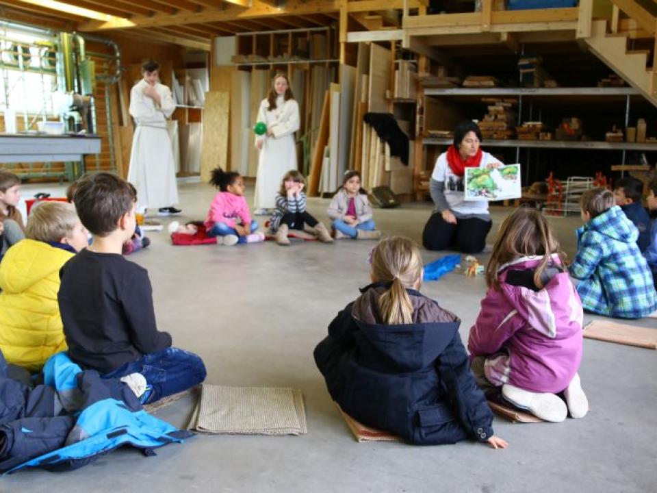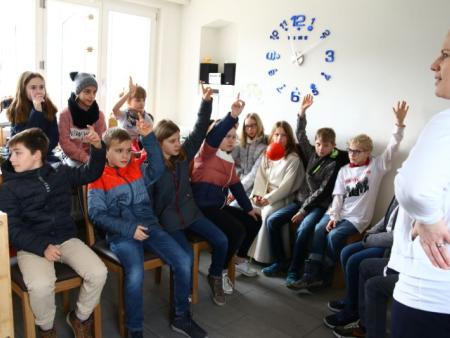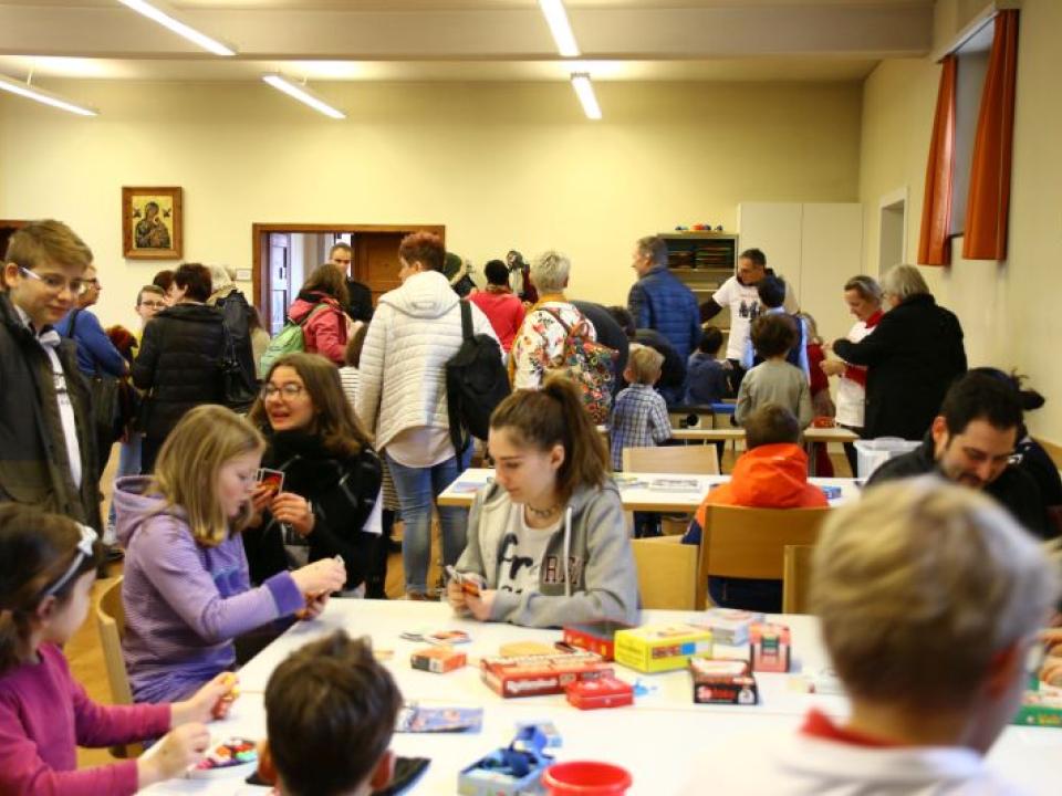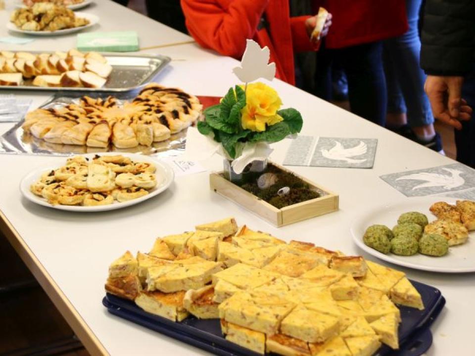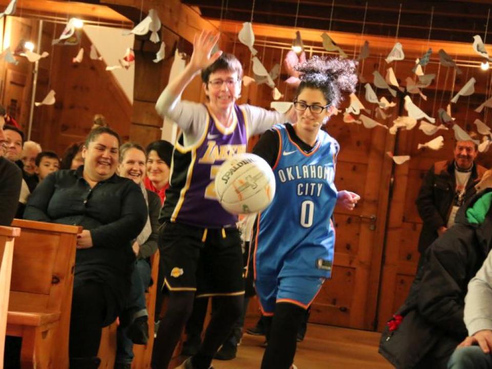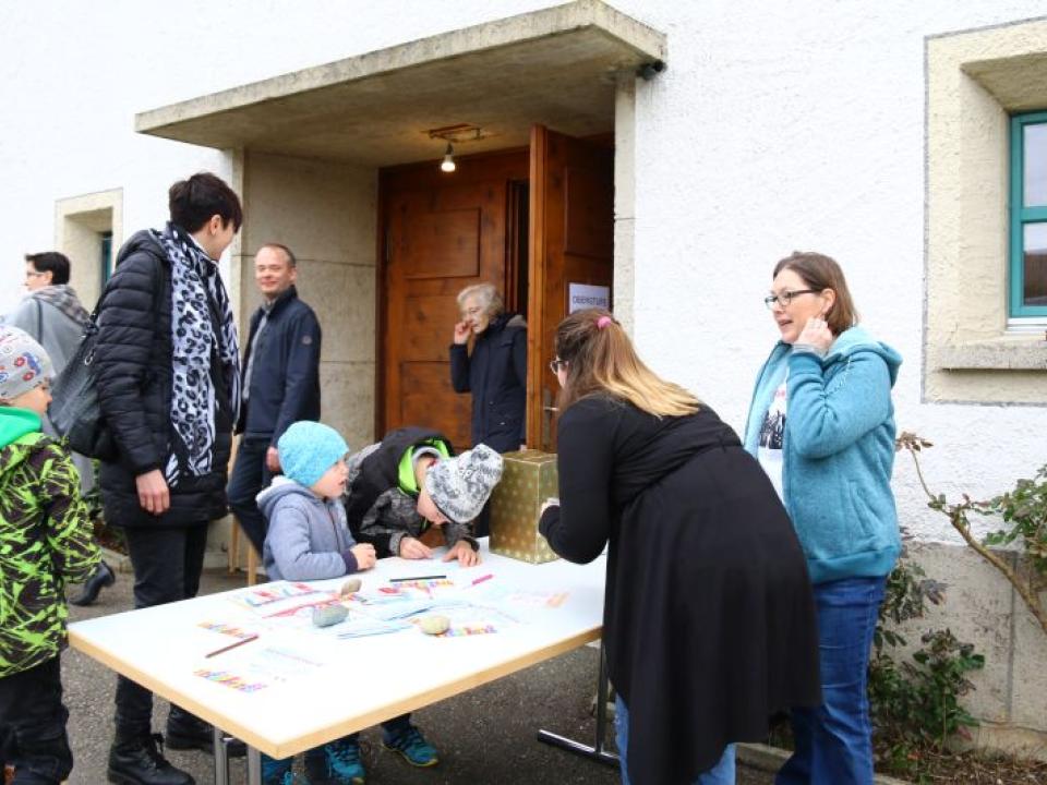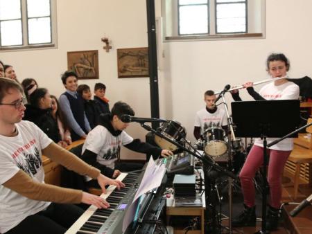 Im Hallauer Kircheneingang hingen dutzende Tauben am „Himmel“ und wiesen schon symbolisch auf das Abenteuerland-Thema „Frieden“ hin. Im Anspiel beim Basketballeinsatz verdeutlichten die Spielerinnen, wie unfairem Spiel auch begegnet werden kann - nicht mit Wut und weiterer Unfairnis, sondern eher mit Versöhnung. In altersgerechten Gruppe wurde von zahlreichen Kindern das Gesehene und Gehörte reflektiert, während in der Kirche die Anwesenden der Predigt von Pastoralraumleiter Josif Trajkov lauschten.