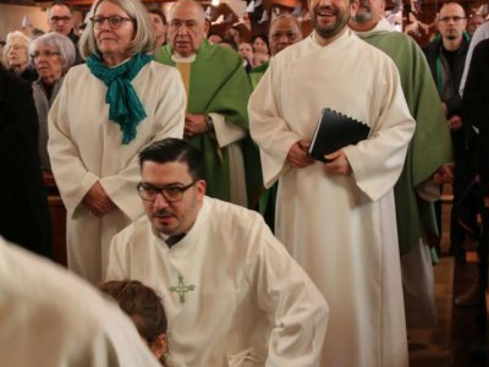 Gott ist da. Gott sagt JA und Gott schafft Gemeinschaft, waren seine drei Schwerpunkte. Dies erfährt er in seinem Alltag immer wieder auf unterschiedliche Weise. Alle Anwesenden hörten anschliessend auch das deutliche JA zu seiner neuen Aufgabe als Pastoralraumleiter im Pastoralraum Neuhausen-Hallau. Margrith Mühlebach, Vertreterin der Bistumsleitung, führte Josif Trajkov offiziell in sein Amt ein und übergab ihm die Missio Canonica, also die Beauftragung, von Bischof Felix Gmür sowie einen Olivenzweig. Letzterer steht für Frieden, Liebe und Treu. Einen solchen Zweig bekam auch Adolf Büttiker, der nun als leitender Priester fungieren wird.